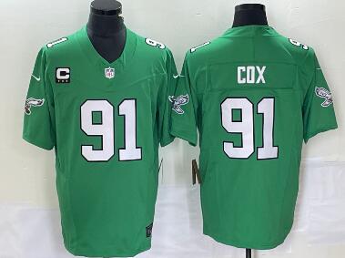Men's Philadelphia Eagles #65 Lane Johnson Green C Patch 2023 FUSE Vapor Limited Throwback Stitched Jersey